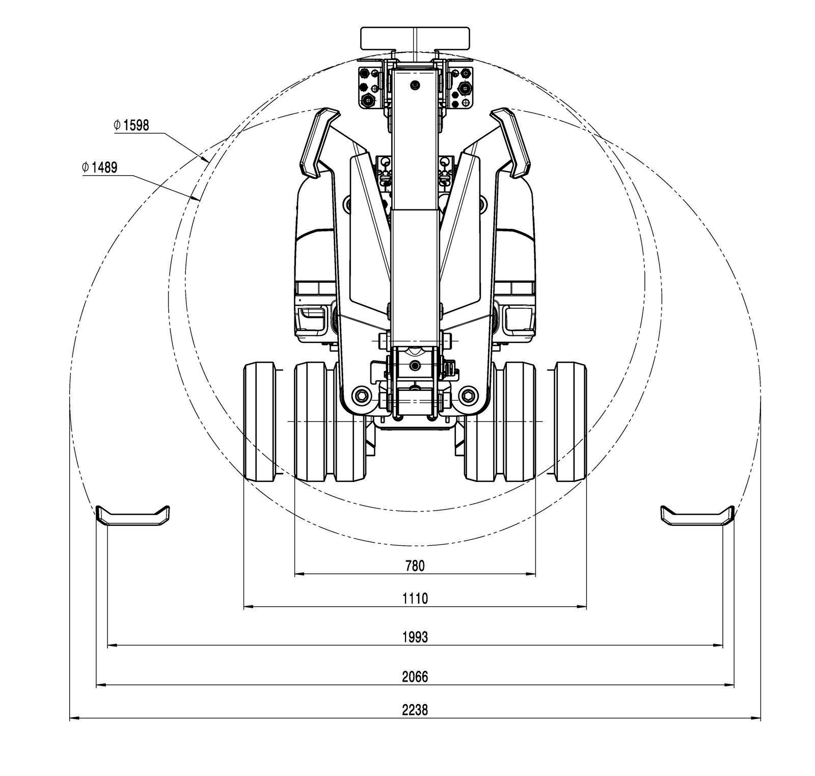 Lengte, machinebehuizing: 2057 mm incl stempelpoten